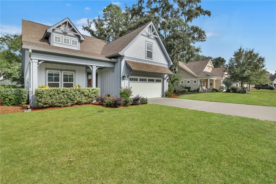 Come view this exceptional like new home in gated and marsh-front Sliver Moss. This 3/3.5 house is stunning. The open floor plan living area leads to a screened porch with gas fireplace and grill area. Beautiful craftsmanship includes all hard surfaces, custom cabinets, and much more. One floor living with a beautifully finished MIL suite complete with bathroom and walk-in closet. Floored walk-in attic and tons of additional storage. Club-like amenities available close by in Spanish Wells include golf, tennis, and dining for active minded buyers. Lot next door (right side of the house) protected and never to be built on.