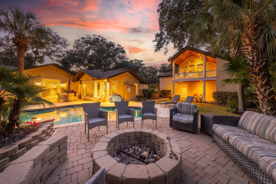 LOVELY FURNISHED BEACH HOME only a 2-block walk to the ocean. So rare to find an oceanside home as private as this, on a half-acre lot surrounded by trees/bushes, like a secret enclave! In a totally residential area: no condos. Spacious backyard w/pool, spa, lounging area, fire pit & grass areas. Updated kitchen & master bath, floor-to-ceiling windows throughout offer lots of natural light. And surprise: garage has been reimagined as a huge game room. And 2nd surprise: the apartment over a garage is massive with a kitchen, BR, BA, and living area! It would be a fantastic rental home. You'll never want to leave this beachside abode!!