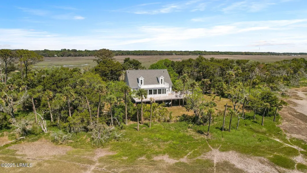 Welcome to your own private sanctuary on Little Horse Island, as seen on ''HGTV Island Hunters'' Season 2 Episode 1, this rare 7+ acre retreat is where the untamed beauty of the Lowcountry stretches out in every direction. Surrounded by the tranquil waters of the Harbor River, this secluded island property offers unparalleled privacy, tidal creek access to deep water, and sweeping views that shift with the rhythms of the tide. Though it feels a world away, you're just minutes from the historic charm and vibrant culture of downtown Beaufort, as well as the pristine beaches and trails of Hunting Island State Park. Thoughtfully designed and crafted by Powell Brothers Construction, the 3-bedroom, 2.5-bath residence is a harmonious blend of comfort, elegance, and coastal living. At its heart is a spacious, light-filled living area with cathedral ceilings, built-in bookshelves, and a gas fireplace. The adjacent sunroom, wrapped in glass, offers a breathtaking panorama of the surrounding marsh and brings the outside in with every sunrise and sunset. The main-level primary suite is a private retreat in itself, featuring dual vanities, separate his-and-hers closets, a soaking tub set before a picture window, and a walk-in shower. A formal dining room or office sits off the foyer, while the elegant half bath adds convenience and style. The eat-in kitchen is both functional and welcoming, with a butcher block island and built-in cooktop, a workstation, new refrigerator, microwave, and oven, and a spacious pantry and utility room. Step outside onto one of two back decks or relax on the expansive front porch and let the stillness of the island envelop you. Upstairs, two generously sized bedrooms each offer walk-in closets and access to a shared second-story deck overlooking the water. A full hall bath ensures privacy and comfort for guests or family. Have peace of mind with a 2018 roof and two 2017 HVAC units. Beneath the elevated home lies a versatile space, including a four-bay garage, a workshop, and abundant storage for kayaks, gear, or future projects. Little Horse Island, named in honor of the Marsh Tacky horses that once roamed freely here, remains a refuge for wildlife and for those seeking space, stillness, and connection to nature. The adventure begins the moment you step outside - whether paddling at dawn, fishing through the day, or exploring the winding waterways by boat. Little Horse Island is a prime spot for red and fly fishing. This is more than just a home. It's a legacy property. A timeless escape. A private island where you can disconnect, recharge, and reconnect with what matters most. A rare offering. A coastal dream. Your island life begins here.