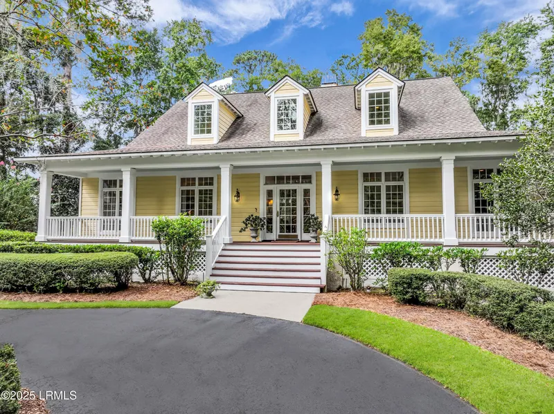 Nestled on a private one-acre homesite, this 3-bedroom, 2.5-bath Lowcountry-style home offers 3,300 sq. ft. of timeless charm and modern comfort. A sweeping front porch welcomes you into an inviting two-story layout featuring hardwood floors, a cozy gas fireplace, and abundant natural light throughout. The main level boasts a spacious office and a primary suite with a well-appointed bath, providing convenience and comfort all on the first floor. Open living and dining spaces flow seamlessly to the large back porch, where spectacular lagoon and golf course views create the perfect backdrop for relaxing or entertaining. Upstairs, additional bedrooms offer privacy and flexibility for family or guests. A detached two-car garage adds convenience and storage. Perfectly blending Lowcountry character with modern updates, this home provides the space, privacy, and lifestyle that makes Callawassie Island so special. The heart of the community is the Tom Fazio-designed 27-hole golf course, complemented by tennis courts, pickleball, fitness facilities, 2 swimming pools, and a clubhouse for dining and social gatherings. The River Club also provides fantastic river views, swimming pool and dining. Residents also enjoy deep-water access via the islands docks, making it an ideal place for boating and fishing. Callawassie Island, South Carolina, is a private, gated island community located between Bluffton and Beaufort, about 30 minutes from Hilton Head Island and Savannah. It offers a balance of quiet natural living with easy access to culture, dining, and shopping. Callawassie is known for its natural beauty, with over 880 acres of maritime forest, salt marshes, tidal creeks, and deep-water access to the Colleton River and Okatie River. The island is designated as a Certified Community Wildlife Habitat, emphasizing its commitment to conservation and coexistence with nature.