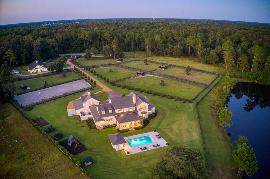 Welcome to Southern Oak Farm, arguably the finest luxury equestrian estate currently offered in the Lowcountry of South Carolina. Boasting nearly eight manicured acres within the gates of prestigious Palmetto Bluff, this offering provides the ultimate level of privacy and security amongst a backdrop of moss-laden live oaks and the vibrant sunsets that the Lowcountry is famous for showcasing. Upon entry to the gated and oak-lined drive, the 8 stall barn commands the attention of the most discerning of equestrians and includes two heated tack stalls, feed room, tack room, office/flex space, an interior wash stall, and custom tongue and groove floor woodwork throughout. In addition, there exist 7 pastures, 3 day pens, a dressage arena, 6 run-in sheds, and 3 outdoor tack/wash stalls; truly paradise for both horses and owners alike. The newly constructed home itself offers approximately 6,500 square feet of luxury at every turn. Architectural nods to the Lowcountry can be found in the exterior use of board and batten along with accents of tabby stucco, a historical oyster shell material indigenous to the area. An abundance of spaciousness exists throughout every primary area of the home, crafting multiple opportunities for entertaining guests. The custom gourmet kitchen island offers seating for a minimum of seven people, while the overly spacious poolside screened porch creates an opportunity to bring the outside indoors by opening its double sliding doors. With 5 full bedrooms, his and her office spaces, two flex space game/media/bonus rooms, two laundry facilities, a prep kitchen certain to be coveted by any chef in attendance, in addition to the 400 bottle wine climate-controlled wine room; the finishings throughout the home only serve to further enhance the quality construction, completed in 2021. Communities like Palmetto Bluff are increasingly rare along the eastern seaboard of the United States, and the introduction of Southern Oak Farm to the market is certain to attract not just the equestrian buyer in today's market.