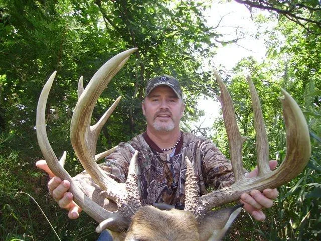 The Wallahachie ranch is a perfectly placed property located in Kansas and Oklahoma. For this reason its been featured repeatedly on trophy deer hunting TV programs like Buck Ventures Outdoors and Major League Bowhunter with Jeff Danker and Chipper Jones. For the past 14 years every decision made about this ranch has had trophy whitetails in mind. The ranch provides the 3 keys to extraordinary deer which are genetics, nutrition and food, and cover or protection to allow for mature growth. Many places lack one of these key components and the quality of deer suffers, but not at the Wallahachie. Now, after many seasons observing deer patterns and movements everything is in place from the tower blind locations to tree stands and enormous grain bin feeders. Again this is not your average weekend getaway or place to hang out with the guys and drive 4 wheelers. On the contrary the Wallahachie is home to some of the nations yes I said the nations largest trophy whitetails. In fact the sheds from the legendary Kansas King, that have been estimated at 217 net were found in the early 90's only 2 miles north of the ranch. Monster deer have been in the area for quite a while and continue to thrive. Jeff Danker told me in the spring around Easter one of his favorite things to do is take his family up to the Wallahachie and look for sheds. He said sheds will be lying all over the ground near the large bin feeders and the kids hurry around picking them up like Easter eggs. Jeff also said its not unheard of to find 25-30 sets, not individual antlers but sets of sheds on one of those outings.