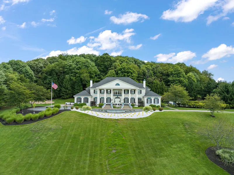 Built by Marco Construction, this alluring Colonial estate has a premium hilltop location with approximately 7.1 acres, a secluded pool, and a private backyard with a Koi pond. The sophisticated interior discriminates attention to detail, making this estate the ultimate legacy property. A colonnaded front porch with natural stone and commanding area views create an impressive approach for this home, which features custom millwork and moldings throughout, granite floors, a wood-paneled office, an advanced security system and a finished lower level ‘rec area,’ complete with a bar and fitness center. Designed for grand-scale entertaining, the residence includes a large motor court with two water features, a two-story foyer with 24-karat gold-plated fixtures, a spacious living room, dual staircases, and an oversized dining room. A butler’s pantry with two walk-in pantries and a large gourmet...