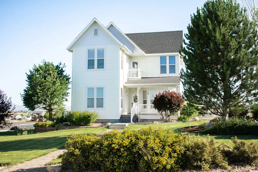 Beautiful, sunny 3660 sq ft (including finished basement) south facing home with captivating mountain views from every window. Open concept kitchen, dining, & living room area, kitchen has custom Alder cabinets, a breakfast bar & a large mudroom/pantry. Second floor master suite has two separate vanities, a spacious his & her shower, garden tub with views, a 6'X8' sauna, walk in closet & two balconies. All bedrooms have their own full bath. Beautiful, solid red oak flooring throughout main & upper level. Basement has two large storage rooms with shelving, laundry room, den & a bedroom with a full bath & walk in closet. There is also a finished garage with adjoining workshop. Additional amenities include a 26'X38' elevated redwood deck, attached 4 vehicle garage, RV parking & mature landscaping with automated irrigation system. Home is sided with factory painted, maintenance free ...
