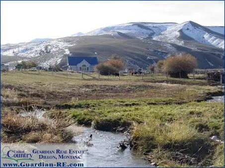 Montana Ranch in Wildlife Paradise. Working ranch with guest ranch potential. 1,300 acre working ranch, located in the shadow of mountain peaks, includes approx. 309 deeded acres with creek frontage & 120 acres irrigated via nearly new center pivot sprinkler plus 1,000 acre BLM grazing permit. Exceptional 4,000 sq. ft. home with 5 bedrooms, 3 baths, large kitchen, formal dining room & living room with a wall of windows. Master suite with private bath, jetted tub & walk-in closet. Private 2 bedroom guest quarters with full kitchen, bath & living room. Additional improvements include updated pioneer era cabin set up for hunting guests, additional hunter's cabin & shower house. Working improvements include log barn & working corral & workshops. Located in southwest Montana, with all season access via county road, about 2 miles from rural town, all in the heart of renowned elk, deer, upland ...