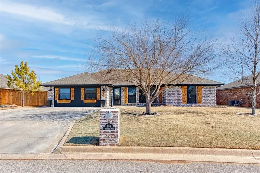 Welcome to 104 Woodridge, a custom home that has undergone a luxury redesign and renovation by local builder, Victor Weatherly. This home features all the updates and amenities you could ask for, all at a price you'll love. Inside, you'll find custom knotty alder cabinets, solid wood doors, and new premium windows throughout, alongside updated appliances, fixtures, and LTV luxury flooring. Every corner of this home showcases quality workmanship and attention to detail. The kitchen boasts granite countertops, a custom island, knotty alder cabinets, recessed lighting, and under-cabinet lighting, Samsung appliances with matching finishes, including a gas range with an air fryer option and a beautiful farmhouse sink. A spacious walk-in pantry with pull-out drawers and outlets for appliances like a coffee maker or crockpots adds to the kitchen's functionality. A new hot water heater and water softener system were installed in '24. The master bedroom offers two spacious walk-in closets with custom storage cabinets and a vanity. The master en-suite includes double sinks, a tile shower with a custom sliding door, and tile flooring. The split bedroom floor plan ensures privacy, even with a large family, with all five bedrooms being spacious and equipped with large closets. All the fixtures selected are high quality. The exterior of the property boasts a 30x40 insulated shop, an above-ground pool with concrete decking and a sundeck, a covered patio, a separate side yard for pets and a new privacy fence. The workshop features a guest room for pets with direct access to the side yard, providing a safe haven from the elements. Additionally, a storm shelter is conveniently located in the floor of the northwest bedroom, ensuring safety without the need to leave the house. The landscaping around the home is gorgeous in the spring and summer months. If you don't have a need for a 5th bedroom, the front bedroom would make a great office space with double windows for natural light.