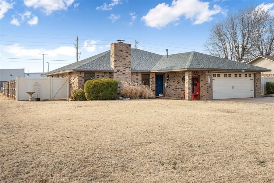 3 Bedroom 2 bath home with a 2-car garage for sale in Elk City, Oklahoma. Step into this very well-kept home with modern farmhouse charm. Entering the home, buyers will be welcomed with a trey ceiling in the living room and wood burning fireplace with built in shelving on both sides. The open floor plan leads to the kitchen that is designed with granite counter tops, plenty of cabinet and counter space and access to the back patio with double patio doors. In addition, there are shortened barn doors to add flare and charm to the dining and kitchen area. The larger primary bedroom has a walk-in closet and trey ceiling with access to the primary bathroom that has a shower/tub combo. With vinyl tilt in windows, natural lighting makes this home so inviting The privacy fenced backyard has a 16 x 12 storage building to help with all your storage needs. Come see this home today! Home qualifies for FHA, VA, USDA, Conventional loans.
