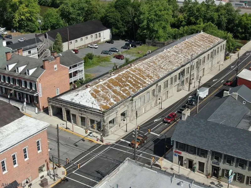 Commanding, one of a kind, stone building located at the busiest corner in the Bedford Borough. Originally built as a Ford Dealership in the early 1900's, this property presents endless possibilities and opportunities. Light manufacturing, warehousing, retail, office space, housing, parking garage, mixed use, etc. Building contains approximately 34,500 square feet, is all masonry and steel construction and free span on the main level. Lot size is .41 acre with city water, sewer and natural gas. Situated in the heart of storied downtown Bedford, next to the Southern Alleghenies Museum of Art, the original Fort Bedford and just steps to the Raystown Branch of the Juniata River. This is a rare opportunity to own one of Bedford's most prominent buildings!!!