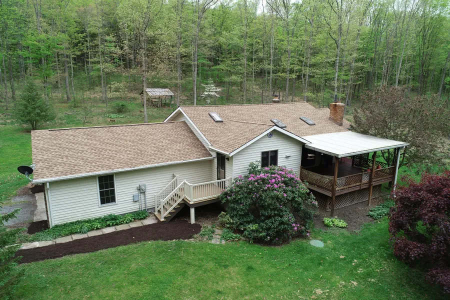 Nature lovers will love the seclusion of this 11.34 acre gem located within minutes of the Omni Bedford Springs Resort. Upon entry one will immediately be drawn to the two story grand great room kitchen area that opens onto a huge covered deck and sunroom. Wood and stone give a warm and cozy feeling throughout that make the home so inviting. Lovely details give this home character and charm that evokes a feeling of warmth and solitude.