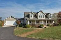Views of Peaks of Otter from this home you won't believe! Privacy on mostly wooded 7+ acres with a stream. Both garages and mud room added in 2006 along with a new 2nd floor full bath, stairs from the upper to lower patio, and steps from newly paved driveway to lower garage. Immaculate home with hickory kitchen cabinets and wood floors, 36' doors & stairways. Lower level partially finished and plumbed for 4th bathroom. New drain field installed in 2007. Set up for B2X high speed internet.