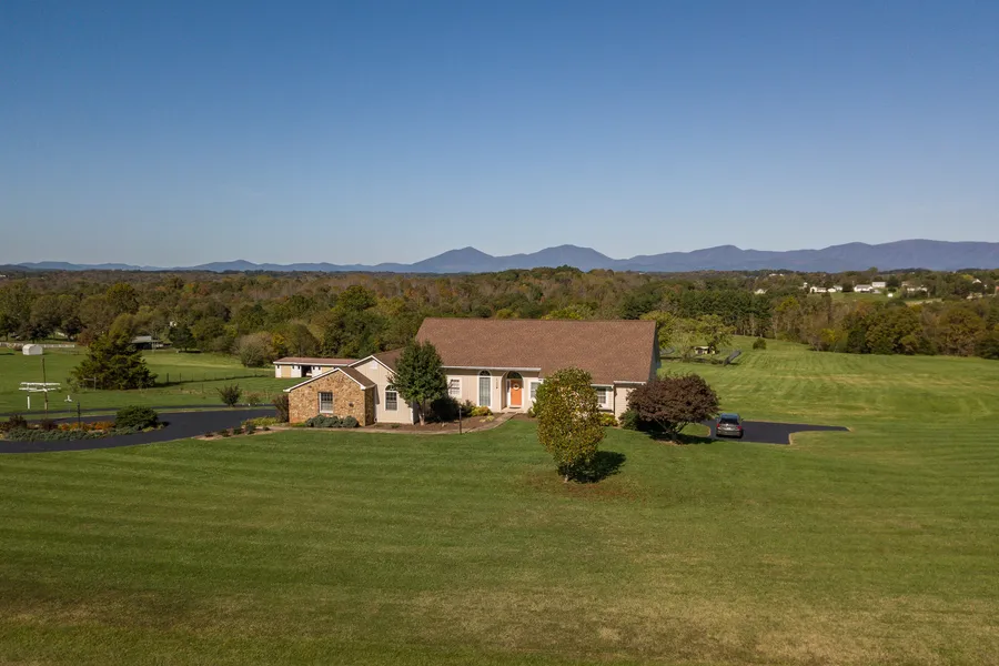 Amazing attention to detail throughout the home. Virtually every room w/a panoramic view of the Blue Ridge mnts. The screened-in porch and deck give you a front row seat for beautiful sunsets. Plenty of storage and a large workshop. Retrofitted for handicapped accessibility. Lower level has a separate living space. The whole house generator kicks in automatically when the power goes out, a huge safety bonus. The barn was built especially for emu chicks, with its cleverly heated floors designed so that the youngest chicks had the warmest footing, graduating to cooler floors before they graduated to the outdoors. Some of the equipment from the operation [that at one time boasted a couple hundred emus] remains in the lower level of the residence. The owner also engineered the delivery of electricity and water to the 8 sheds on the property. Those lines still exist.
