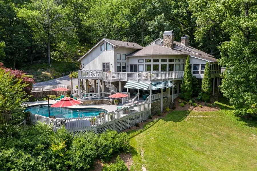 A rare find, this Contemporary Mountain Family Retreat was custom built for gracious living! Nearly 6000 SF w/fabulous flow: 4 BR, 5.5 Baths, swimming pool, pond, rushing mountain stream, and nearly 200 acres just 20 minute outside Bedford. Main living area boasts a beautiful native stone fireplace, DR w/FP, and kitchen w/large pantry and 1st fl laundry. From LR and DR, access the screened porch and/or deck to enjoy views and sounds of the babbling Sheep Creek below. Both Huge Master Suite with private deck and Guest Suite with private porch and spa tub on1st floor; upstairs w/2 BR and bath. Lower level offers additional LR and den/office space, game room, 2 baths, extra dryer for pool towels, kitchenette and sauna! Lovely porches and multi level decks offer easy outdoor living and views of the lawn, pool and wildlife. Impeccably maintained w/oodles of storage, this property also has sep...