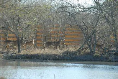 Ranch: Ranch has good fences throughout with app. 27 ac. has a Ist rate high-fence. Large submergible well at home supplies water throughout the ranch with access points for portable watering. App. 5 well built blinds that will accommodate 1 or 2 hunters are strategically placed. Several feeders are set up throughout the ranch. To protect the large (est. 75-100 ) whitetail deer herd. wooden privacy fences have been placed in certain areas. Four stock tanks keep the deer well watered. The deer have ample cover and good browse.