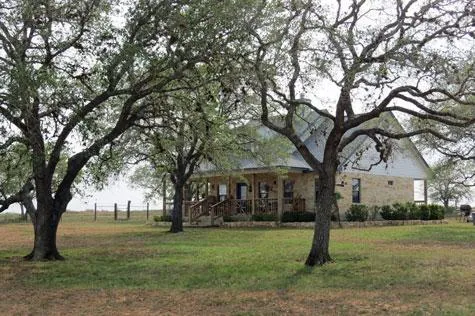 This is a very attractive ranch that has rolling terrain, numerous oaks and good native brush. The home sits on high ground and has absolutely beautiful views. This immaculate home features Texas Hill Country styling with stone exterior, 1.5 stories, large porches, 3 bedrooms and 2 baths. The living room is a comfortable size and features a fireplace with the same cut stone as the exterior. The kitchen & living room are separated by a serving bar for casual dining. The kitchen has excellent storage including handsome oak cabinets, a large walk-in pantry and a built in wine cooler. Countertops in the kitchen & baths are ceramic tile. Bedrooms are carpeted but the rest of the house has ceramic tile flooring in a neutral stone look design. The master bedroom & bath are located down stairs. The house is wired for a security system & has speakers & indirect lighting on the porches. The entire yard is fenced and there's a nice storage building that was built to match the house. There's also a nice equipment/hay shed situated near the livestock pens. The pens have 2 water troughs and a dedicated water well. This well can also be utilized to supplement the water in a nearby stock pond. The pond has a few shade trees for livestock, and is an excellent draw for doves. The pasture has good native brush, but it's currently being maintained by shredding. A separate pasture has been fenced off and left natural for the wildlife. Much of the furniture is available for purchase. List of pieces & prices are available. A MUST SEE PROPERTY!