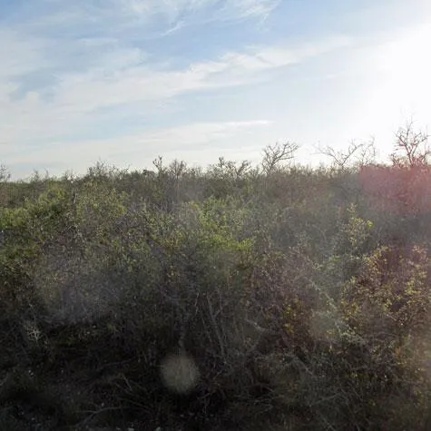 Native brush and trees over sloping terrain.