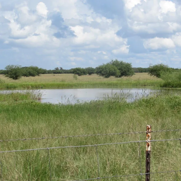 999.35 acres CR 409. A large cattle ranch with improved grasses east of Beeville. At time of listing (September) the land is a "sea of grass" thanks to good rains. The paved county road ends at the ranch gate. Nearby, is a very good set of working pens, a solar water well, cistern and trough. A road heads to the east boundary passing a nice sized stock tank, which would be good for dove hunting. Another road heads to the north fence along the western boundary. There appear to be three pastures each with water piped to them from the well at the pens as well as another solar well and a submersible well with electricity further north. There is another stock tank in a northern pasture. A few small oak motts dot the ranch.