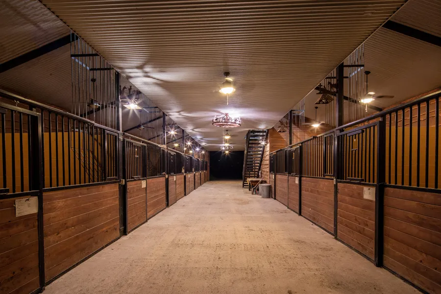 The covered riding arena is 150 ft x 250 ft and has a stage structure at one end for concerts/announcers. The covered corral is made with beautiful craftsmanship and has wrap-around seating.