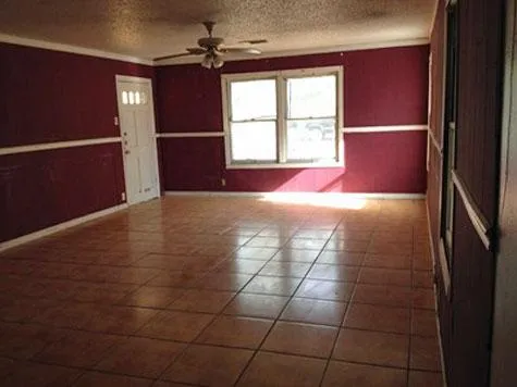 3 bedrooms, 1 bath, ranch style home is situated on a large corner lot with a tree lined street , a large open living room with chair rails, lots of windows, and an easy to maintain tile floor throughout house. Includes a covered patio that looks over a large, privacy fenced backyard. Could use some TLC. Preview this home today!