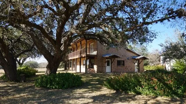 Secluded on 22 acres this 2 story brick home is surrounded by beautiful large oak trees. 3 bedrooms, 2.5 bath, upstairs living, downstairs living with fireplace is open to the kitchen which in turn is open to the breakfast area and formal dining.. Peaceful views out every window. Wrap around porch and upstairs bedrooms have access to balcony. Master suite is located on first floor. Several out buildings include an oversized 2 car garage. storage area and large workshop with overhead door. THIS PROPERTY IS BEING SOLD "AS IS."