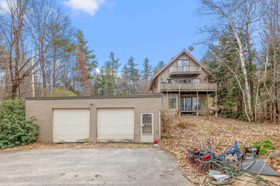 This 24 acre property is private, yet just a short drive to all the Lakes Region has to offer. Set back from the road with a split paved driveway this home has vinyl siding and a metal roof. This home features a first floor bedroom and full bath. Family room is open to the kitchen and has a wood burning fireplace. A newer sliding glass door opens to a large deck. Upstairs there are two more bedrooms and a bath. One of the bedrooms has a balcony with partial views. The basement has a finished living area and small bath. There is a cedar lined sauna in the basement as well. Behind the house there is a two stall horse barn with tack room, electricity and running water. Another building currently being used as hay storage could be two more stalls. Behind the barn there is a large, flat riding arena. Overall there is plenty of land to explore. Here is an opportunity to get a large piece of la...