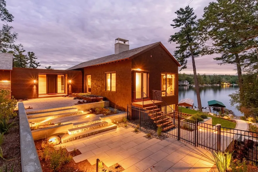 This 2025 Governor s Island masterpiece designed by Hutker Architects and constructed by Wood & Clay reflects timeless design and exquisite craftsmanship. Features include western red cedar siding with shake roof, 3-car garage, expansive Marvin windows, European white oak millwork, smart-home systems, radiant heat, interior and exterior sound system, and stunning custom finishes. The main level offers soaring ceilings, chef s kitchen with La Cornue range, Thermador appliances, Galley sink, lakeside dining area, and a primary suite with floor-to-ceiling glass, spa-inspired bath, and direct walkout. The lower level offers a lakeside bedroom, bunk room, office/den, wet bar, second laundry with dog-wash, and slate floors. It is also a wellness retreat with hot stone & infrared sauna, gym with yoga wall and cork floor, and wet-room bath with soaking tub and lake access. Outdoor living is extr...