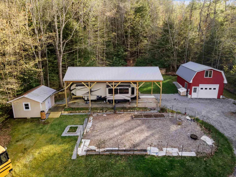 A must see. This relatively level lot has a 2 story, 1 car garage, a mini-split cool/heat system on both levels, and a washer, and dryer hookup. Covered RV area, with metal roof, to protect from the elements. The RV is included in this sale. Outdoor shower. Horseshoe driveway offers plenty of parking. Sanbornton (Lake Winnisquam) residents only beach a short 1800' away (approx.). A wonderful get-away / vacation spot. Electric and dug well onsite. Large deck for easy outdoor entertaining and enjoyment. Apple trees, and large garden area. Shed for all your yard needs. This property is meticulous, and has been well cared for.