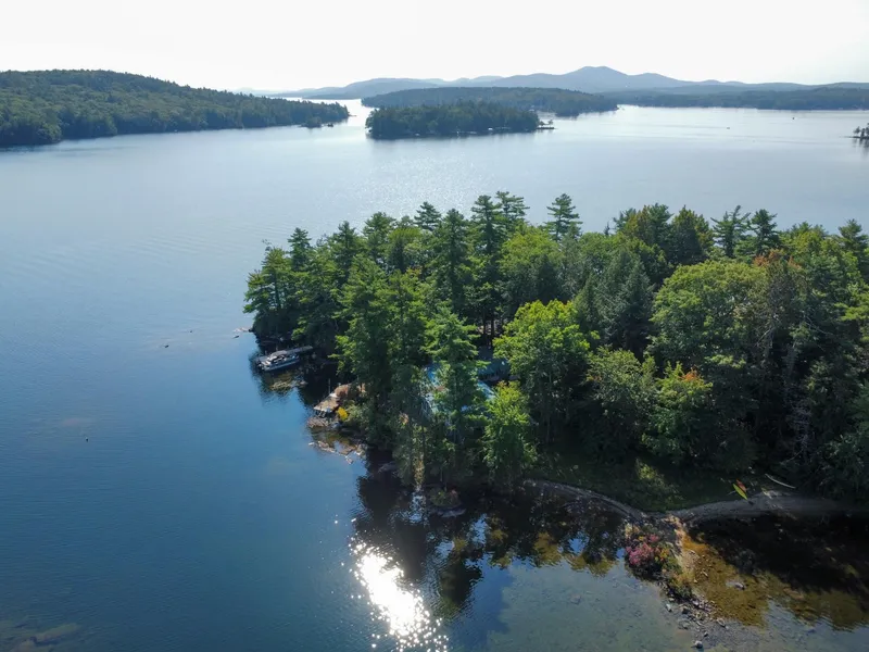 Experience year-round enjoyment at this unique, stunning property on Lake Winnipesaukee, featuring a charming 3-bedroom home on site. Nestled on the coveted and private Oak Island, one of the rare islands with a bridge allowing year-round access and home to just four properties, this residence offers breathtaking views in every direction. Enjoy stunning sunrises to the East, the majestic White Mountains to the North, and picturesque sunsets to the West. Situated on a peninsula in a serene double cove, this exceptional property boasts a grandfathered deep-water dock, accommodating two boats and jet skis. Located in a peaceful cove. The current home has some mold issues that can be remedied, and the bathrooms need renovation. Once addressed, you'll be able to enjoy a charming, single-level residence steps from the lake. If you envision building your dream home, the seller has approved plan...