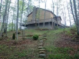 A great cabin get away or permanent residence in a secluded, gated cabin community. Circular driveway, wrap around porch and screened in area with an outdoor fireplace. Beautiful solid teak wood flooring and custom made cedar furniture. One of a kind spiral wooden staircase leading to separate lofts, one game room with pool table and the other with two twin cedar beds. A great room with leather furniture also has a grand fireplace up to the 20 foot ceiling. Two bedrooms on main floor with 1 and 1/2 baths. Glass shower and corner jacuzzi.