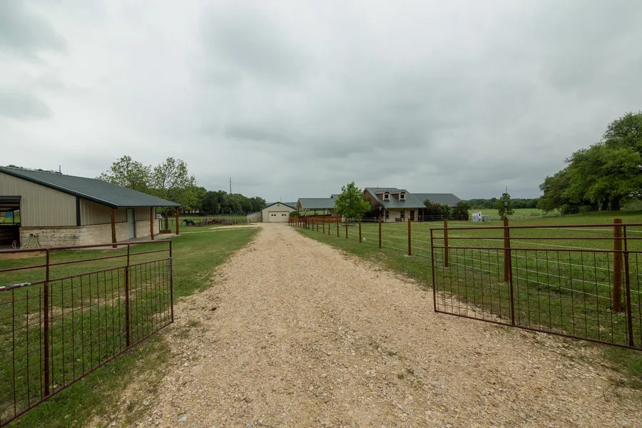 This 5 acre property is a true countryside delight! It was completely rebuilt from the ground up in 2009 w/ 4 bdrms, 2 bath, & over 2700 sq. ft. Features include full rock/stone exterior, wood laminate flooring, lighting on back of property, partial electric fencing, fully enclosed acreage, in-ground pool w/ slide, pool house w/ fans & speakers, 4 horse stalls/2 runs, sand arena, & tons more. Portable stock panels/gates & curtains do not stay. MUST see this property to appreciate it! *Measurement approx.