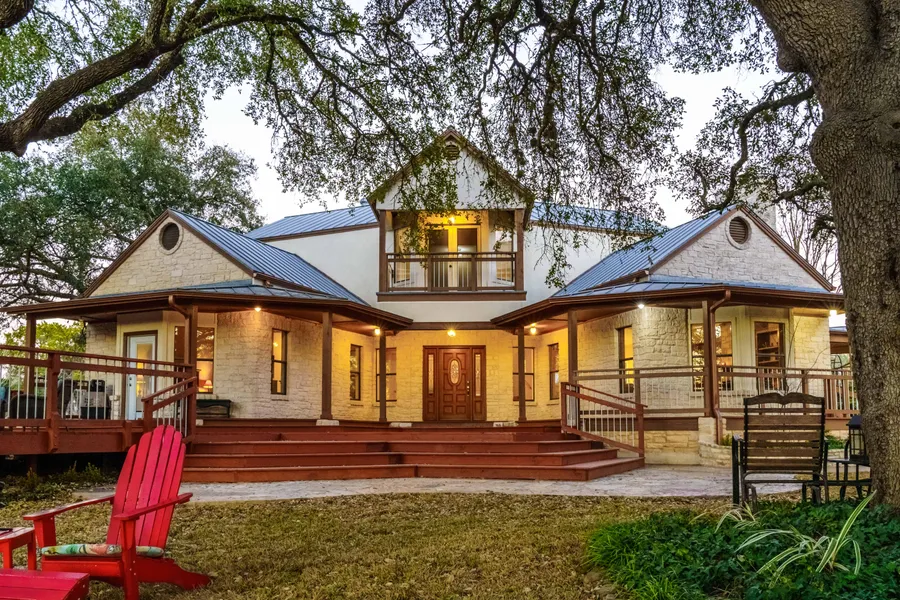Beautiful 3 bed 2 1/2 bath house located on 7+/- improved acres where 6.5 acres is Ag exempt for lower taxes. One side of property is bordered by wet weather creek. Five minutes to dining, shops, and breweries in downtown Salado. Enjoy entertaining on the enormous front deck under the numerous century oaks that are scattered throughout the property to provide shade for those hot summer days. 5' tall 4"x2" tri-rail fencing surrounds the property along with cross fencing to separate the livestock. Underground electrical and water is provided to all outbuildings that includes a 30' X 40' horse barn equipped with a 30' X 10' shop, a 12' X 24' metal shelter, and a 30' X 20' livestock shelter with a 85' X 45' gated corral. There are improved roads that provide ATV/UTV/tractor access to the entire property. Bring your horses, cattle, and sheep to this ready to go property. Spacious primary bedroom on the main level with his and hers closets. Primary bath has double vanities along with walk-in shower and soaking tub. The beautiful living area with wood burning fireplace is a great place to convene during our Texas winters. The house provides a large pantry and laundry room along with a spacious kitchen and dining room which has a built-in buffet area with extensive cabinets. Upstairs their are two large guest bedrooms with a Jack and Jill bath in between along with a common area that has access to a balcony that overlooks the deck and pastures. Don't miss out on this one of a kind property in the Beautiful town of Salado. Centrally located with Austin only 40 minutes away, San Antonio 2 hours away, Houston 3 hours, and Dallas 2 hours!