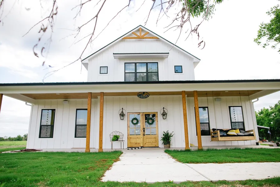 Here's your chance to have it all: Recently built modern farmhouse with almost 2800 square feet on 60 acres. Country living with modern amenities! This beautiful home features an open floor plan with a phenomenal kitchen, complete with GE Cafe appliances including double ovens, gas range, & pot filler. The butler's pantry & coffee bar allow you to hide the mess while you impress your guests. The spacious master suite is designed with relaxation in mind. The master bathroom features a soaking tub and a sauna shower. Each bedroom has its own bathroom en suite. The back of the home is a large screened living area with a fireplace. The floors in this room and all shiplap throughout the house were carefully salvaged from the original 120 year old farmhouse that sat on this property. The pool, patio, and pool house are the perfect place to unwind in the summer evenings. The front of the land is planted in hay grazer. The back portion is wooded with North Elm Creek running through.