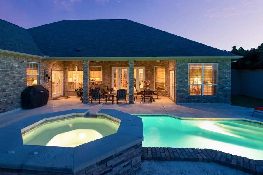 Beautiful custom cul-de-sac home on Mill Creek Golf Course. 4 BR, 3 full baths, 3 car extended garage with two living, two dining, an office & hobby room. The very large kitchen features double convection oven/microwave combinations, KraftMaid custom cabinets with granite countertops, two pantries, kitchen island & a breakfast bar. All marble master bath with walk-in frameless shower & garden tub. Whole house sound system with custom entertainment center which includes a 65 TV. Four sets of French doors make this home excellent for enjoying the outdoors & pool. $67K of documented extras from the builder, a 36KW whole house generator and a 6 x 25 attached brick storage area are just some of the extra features this home offers.
