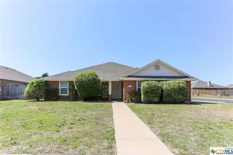 Lovely 4 bedroom, large home situated on corner lot in quiet subdivision of Nolanville. Low taxes as well as little congestion draw families to this neighborhood. Park located off 10th street is open to all residence. Brick fireplace is the focal point of great room upon opening door into home. This room will hold large sectional or oversized furniture. Access to patio is between great room and kitchen. Kitchen is loaded with cabinets, large pantry, also pull up breakfast bar. Utility room is off kitchen and it too has generous cabinets also leads to side load garage. Master bedroom on back of home features a tray ceiling to create a more spacious area. Mstr Bath offers corner closets, dual lavatories, separate shower & garden tub. Think of all the ways to enjoy this covered patio throughout the winter but especially in summer months. Children can have run of the yard with their friends.