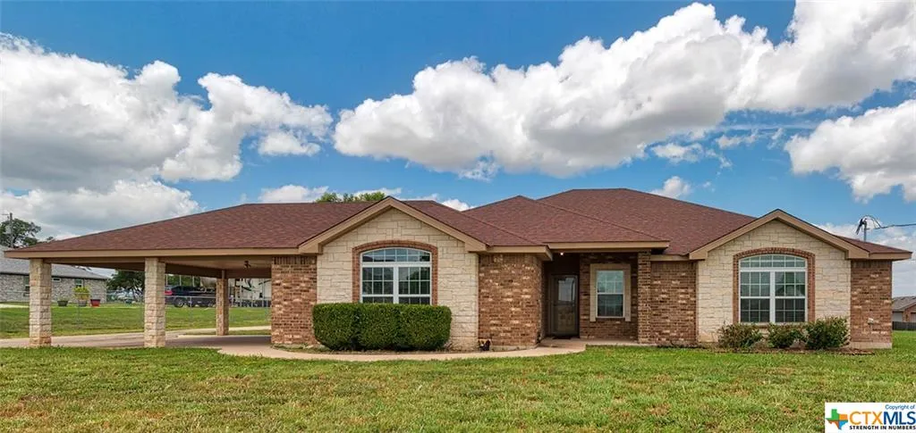 Move out to the country and spread out on this 1.72 acre lot that is the ideal spot for this spacious home. The expansive front lawn combines with classic landscaping and the stone and brick exterior for pleasing curb appeal. A large covered carport and adjacent is an upgraded storage building with extra parking in front that provides plenty of parking for vehicles. Enjoy the backyard from the patio with pergola covering that extends from the covered patio. Inside is a lovely floor plan with a great room with fireplace and upgraded wood laminate floors which extend to the formal dining room. The combination kitchen and breakfast area have tile floor and great natural light thanks to the windows overlooking the backyard. The kitchen has granite counters, an abundance of cabinets and stainless steel appliances. A double tray ceiling adds depth to the owner's suite bedroom and the bathroom has a large soaking tub with separate shower. Added amenities include RV parking and hook-up.