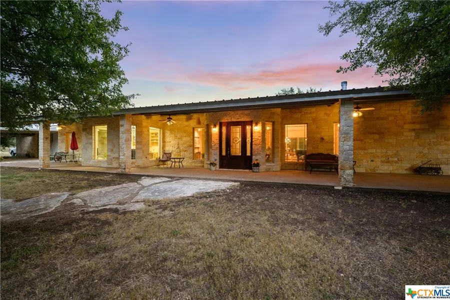 This stunning 4 bedroom 2 and a half bath home located just west of Salado is fully fenced and gated with private access control. When you walk into the great room with soaring ceilings, large windows, a gorgeous stone fireplace and an amazing open kitchen, you will know that you are home! The granite countertops go around the kitchen and continue onto the 2 large islands with plenty of storage. The kitchen boasts two ovens, a food warmer and a large walk-in pantry. On one side of the home is a spacious primary bedroom which features a spa-like bathroom with marble countertops, 2 walk-in closets, exercise room and a separate tub and shower. There are 3 bedrooms on the opposite side of the home, a full bath and a half bath. Walk into the dedicated office space that has built in shelves, granite countertops and a wall of windows that look out over the expansive back yard. This home is a mu...