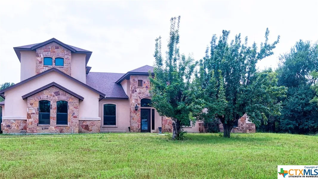Enjoy the peace and quiet offered at this lovely estate set on over 2 acres with a huge home and upgraded in-ground pool. The spacious floor plan is highlighted by bold stained concrete floors, arched entryways, high ceilings and plenty of windows for great natural light. Modern living is easy in the gathering space that encompasses the island kitchen that overlooks the family room and dining room. Make meals and memories in the gourmet kitchen with an abundance of cabinets, a stone-backed breakfast bar and under cabinet lighting. The owner's suite bedroom has a tray ceiling with crown accent and the bathroom has a central soaking tub with walk-through shower behind and furniture-style vanities. Outdoor entertaining is easy on the generous covered patio with an outdoor stone fireplace.