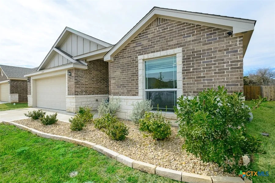 This home offers the perfect blend of comfort and style, set on a spacious almost quarter-acre lot. The property welcomes you with its distinctive two-tone brick and stone exterior. Step inside to discover the home's tasteful interiors marked by elegant crown molding and striking stained concrete flooring. The unique kitchen layout includes a delightful coffee nook and offers abundant storage options. Entertain in style in the formal dining area or relax by the electric fireplace in the living room. Thoughtfully designed, the home boasts bench seating with storage in the breakfast area and a versatile entryway fitted with a hanging area, a bench with built in under-seat storage, and overhead cabinets to ensure everything has its place. The expansive backyard is your own personal oasis, complete with a firepit and additional seatingperfect for gatherings. Don't miss your chance to experie...
