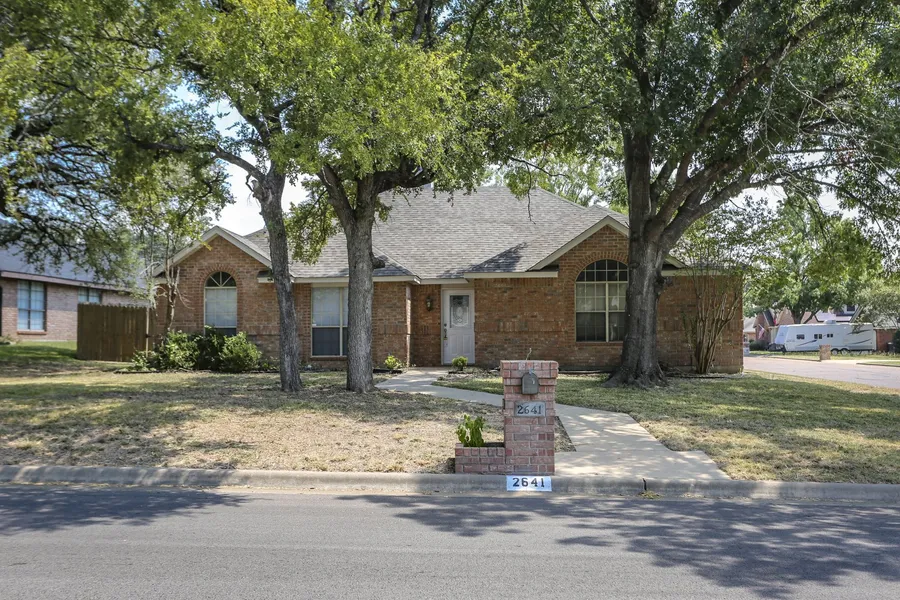 Situated on a large corner lot with mature trees, this 4 bedroom, 2 bath home offers charm and functionality. Step into a tiled entry to see natural light flooding in from the bank of windows in the large Family room with an adjoining dining room/flex area and a central Fireplace. To the left of the entry you will find a hallway leading to 3 secondary bedrooms (with lovely wood laminate flooring) and a tiled hall bathroom. Beyond the family room and to the left is a small alcove with storage cabinets leading to the owner's retreat offering wood laminate flooring and a large ensuite bath with a large, walk-in closet, jetted tub and separate shower. Located on the opposite side of the home a breakfast area with a bay window, backyard access to the large deck and the kitchen boasting granite counters and a pantry. Enjoy outdoor activities on the deck and in the spacious backyard. Convenient...