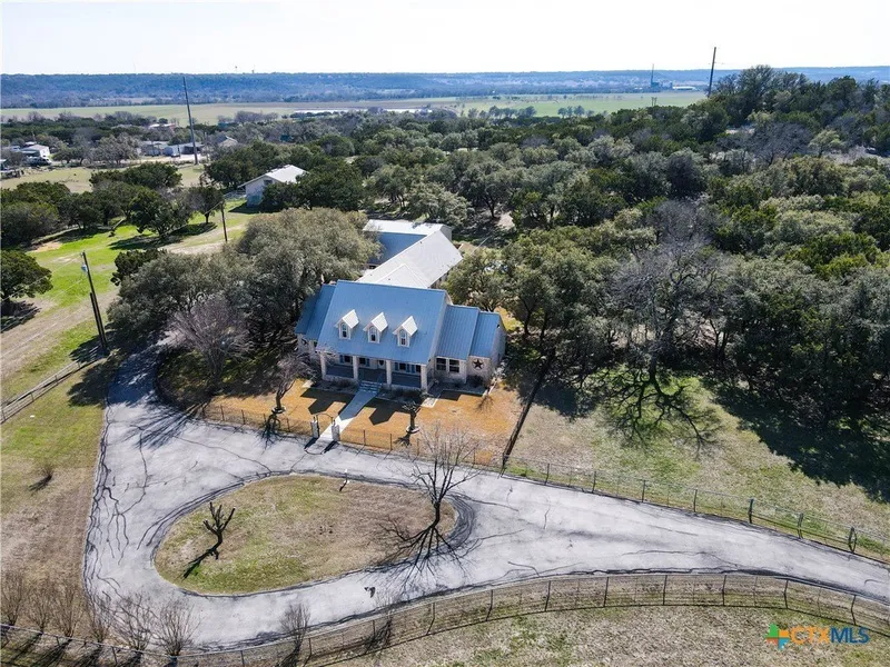 Escape to this exceptional 2-story home surrounded by majestic trees set on 3.5+- acres of serene countryside. This beautifully designed home boasts a welcoming covered porch, ideal for peaceful outdoors. Inside, you will find a kitchen made for a chef with subzero fridge, island, ample storage and butler’s pantry. The breakfast nook includes a plant cabinet with water/drainage and opens to the formal dining room with stunning built in cabinetry. The stunning living room is highlighted by vaulted ceilings and windows that flood the space with natural light. The main-level primary bedroom offers room to relax with an en-suite bathroom featuring a luxurious jacuzzi tub, a walk-in shower and walk-in closet. A guest bathroom and laundry room with sink and hamper cabinet finish off the downstairs. Upstairs, two inviting bedrooms, each with large closets and a full bathroom, provide ample space for family or visitors. An additional storage room provides versatile space for sportsman enthusiast. Additional highlights include a Generac Generator, 5 car garages with ample shelving, 1 bedroom fully functional guest house apartment/mother-in-law suite, complete with a kitchen and full bathroom perfect for guests or rental income and a game room. This home perfectly blends country living with convenience. Located just 5 minutes from Belton and 15 minutes from Killeen/Ft. Hood, you can enjoy the peace of rural life while having urban amenities. Additional acreage is available. Total square footage including main house, guest house and game room is 4,164. There are 4 total bedrooms, 5 full bathrooms and 4 half bathrooms on the property.