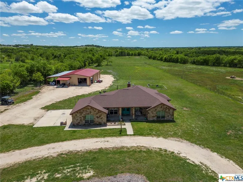 Welcome to Troy Texas Living! Looking for a quiet country home with plenty of room for horses? This rustic 4/2 is nestled on 22+ Ag exempt acres in Troy school district!!! The main house includes stained concrete floors, granite countertops, wood burning fireplace and an 8x10 walk in gun safe! Approximately half the property is native pasture and half is wooded with a creek and ATV trails. Theres plenty of room for target shooting with a 10 foot tall berm for a backstop and a stock tank full of channel catfish eager to be caught. Behind the beautiful home is a 40x60 insulated shop with 3 bay doors and a 900sqft fully functioning guest house. Attached to the shop is an 18x60 lean-to to store your boat, ATVs and tractor. Properties like this are hard to come by! 15 minutes to Temple, 15 minutes to Lake Belton, 20 minutes to Waco, 1 hour to Austin. This is the one you have been dreaming of!