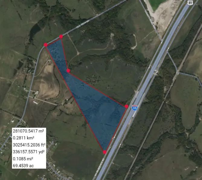 This 70.02 -Acre tract of land is conveniently located right off Interstate Highway 35 in Bruceville Eddy,TX. Its part of Waco Metropolitan statistical Area The property has +/- 1492' on Hwy 35 - +/- 695'of frontage along Old Highway 81 and suitable for Industrial Outdoor Storage (IOS), Industrial and commercial development. With it's location on the highway, this tract is ideal for IOS and Industrial Its location off Interstate Highway 35 allows for easy accessibility, and sees over 70,000 vehicles per day according to a 2021TxDOT Study. This property is located close to city limits of BRUCEVILLE EDDY,TX in middle of Waco and Temple. The Waco Metropolitan Statistical Area has a population of over 270,000 people. The City of WACO, TX is located approximately 20 miles north of this property and TEMPLE, TX is 15 miles to south of this property. Possibility of Utilites to the Site with discharge permit filed for future sewer plant.