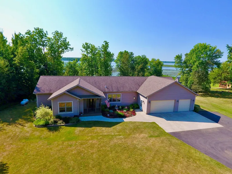 Gentle slope to 150' of firm sand shoreline on Blackduck Lake. Quality built 5 bedroom, 3 bath home on 4.8 acres. Designed with view of lake with master suite, dining room, living room with gas fireplace and elegant kitchen on main level. Lower level has large walkout family room, bedrooms with lakeside views and in-floor heat. Triple attached garage with workshop space. 2 parcels to provide privacy.