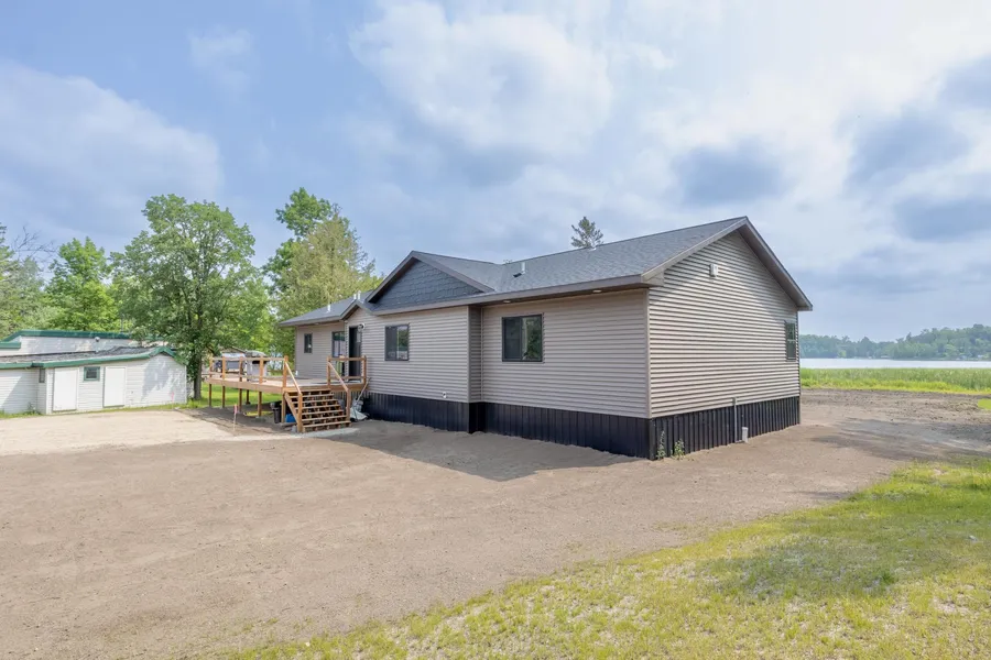 Come to the lake, QUICK and enjoy 685 ft of shore line and 2.91 acres! This very new 3 bedroom 2 bathroom home rests on the western shores of Turtle Lake giving you access to Movil and Little Turtle Lake! Freshly landscaped, to include brand new decks in front and back, a site for a garage next to the house and a garage can be built across the street. With great views of the lake from the primary bedroom, living room and kitchen you will love this one level living.