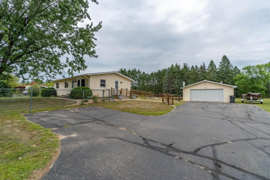 If you are looking for a completely remodeled home with fun touches and updates, then this 3-bedroom home could be it! Very well maintained with newer carpets, remodeled kitchen with new stainless steel appliances, a new tub and surround, brand new AC condenser installed summer of 2023, heated garage, and a shed. The lower level has an additional large room that would be perfect for a home theater. Paved driveway, decking complete with railings, a ramp, and a huge private 1+acre lot. Conveniently located, see it today!!