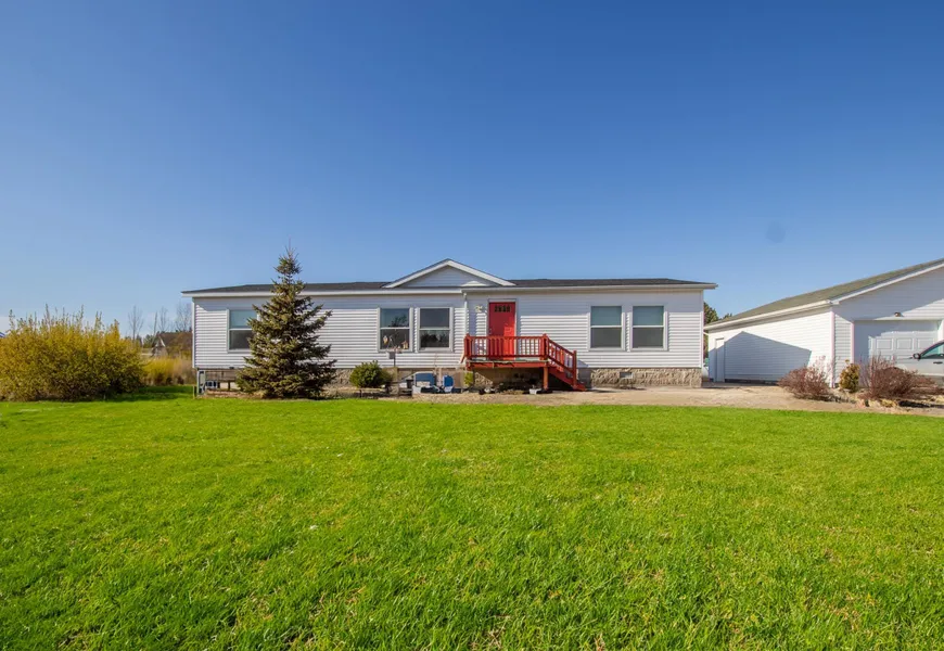 Wonderful 3BR/2BA doublewide, boasting an inviting open floorplan that seamlessly connects the spacious primary suite, a well-appointed kitchen complete with a convenient pantry, and a 2-stall garage for added convenience. Right outside features a concrete patio, perfectly nestled between the house and garage, offering an ideal space for relaxation or entertaining. Conveniently located west of town, this residence is in close proximity to local schools and minutes from town.