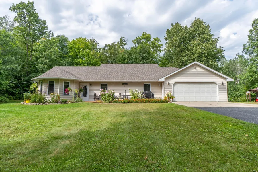 Welcome to this wonderful 3 bed, 2 bath open concept, one level home! It sits amongst a beautiful, tree covered 10.12 AC just minutes from town. Enjoy the privacy and groomed trails, along with the wildlife and bird watching. There are beautiful perennials and two garden sheds, along with a double attached garage. Schedule your showing today!!
