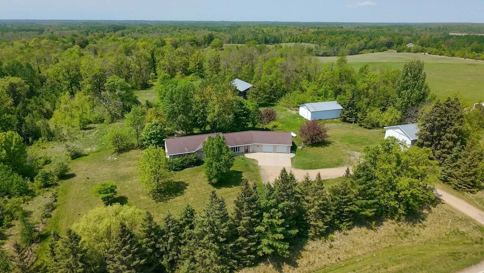 Price Reduced! Nestled on 10 stunning acres north of Bemidji, this property is a dream! Enjoy breathtaking views of rolling hills and a mature grove of trees from the expansive deck perfect for morning coffee or sunset relaxation. Inside, the sprawling home has everything on the main level featuring three spacious bedrooms and a large laundry room, offering both comfort and convenience. The full walkout basement has a 3/4 Bathroom and the rest is unfinished and is bursting with potential create a home theater, gym, or extra living space! Love storage? This property has it all with a heated two-stall garage, a 28 x40 heated shop, a 30 x40 pole building, and a massive 32 x64 hay shed. Whether you're into hobbies, farming, or need space for all your toys, this is the perfect place to call home!