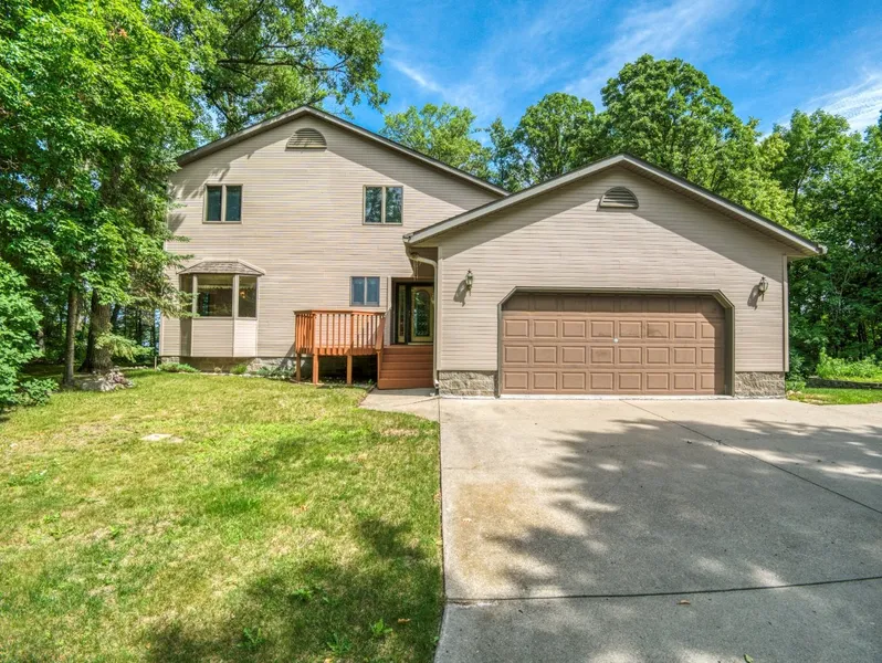 Beautiful 3600+ sq ft, 4+BR/4BA custom home on a desirable 1.9-acre tree lined lot on Lake Julia. Bring all your toys as this home boasts 3 oversized 2 car garages (That's 6+ stalls!) Spacious main bedroom with ensuite, vaulted ceilings, fireplace, and a wall of windows overlooking the sunset views on the lake. Entertainer's kitchen with quartzite countertops, tile backsplash, wet bar and built-in pantry. Open main floor with fireplace, 3-season lakeside porch and tons of natural light. Main floor guest bedroom, full bath, and mud/laundry room off garage. Lower level has a guest room, full bath, sauna, and TV room. Over 200' of direct access hard bottom lakeshores with a dock for your boat or pontoon. Lake Julia is on the Continental Divide with its waters flowing north to Hudson Bay. Many species of fish are found here such as walleye, northern, crappie, sunfish and more! Take a few cas...