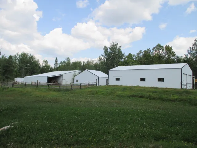10 acres with 3 large barn/workshop/storage buildings. Mainly wooded with wildlife pond and some open field.
