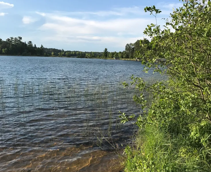 Enjoy sunsets from this level lot on Big Bass Lake! One of the very few left. Nice trees and paved road. Wonderful neighbors.